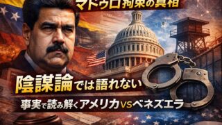 ニュース 【陰謀論無し】なぜアメリカはベネズエラ大統領マドゥロを「誘拐?」したのか|起訴・制裁・石油で読む当事者の事実 「誘拐なのか逮捕なのか」。米国の起訴と報奨金、制裁の出し入れ、ベネズエラ側の主張を当事者発表中心で検証し、問題の本質を見抜きます 2026.01.07 ニュース